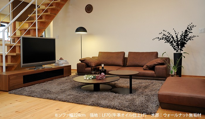 ※幅224cm 張地 :LF70(牛革オイル仕上げ) 木部 : ウォールナット無垢材