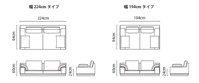 ソファの幅は194cmと224cmの2種類。