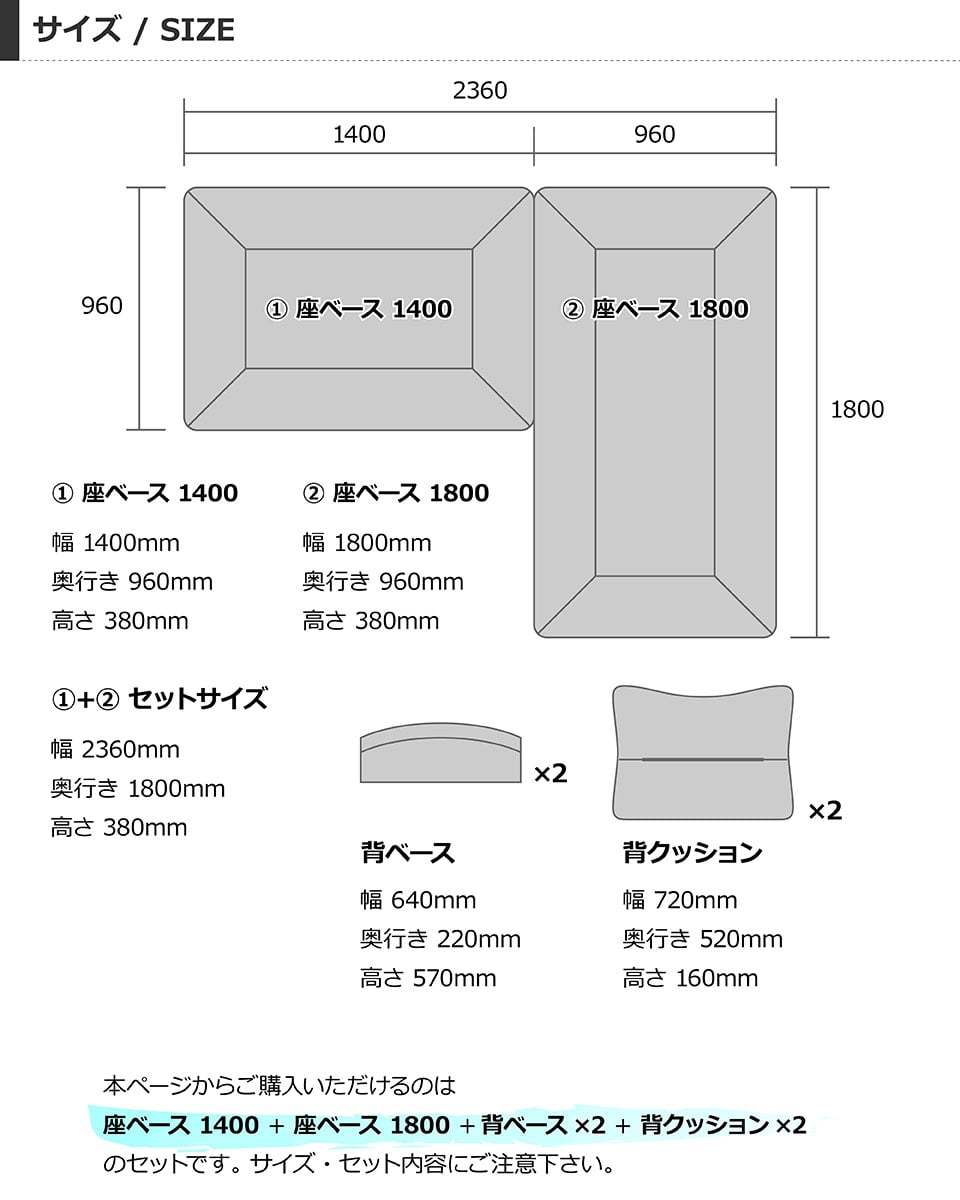 リベラ 座ベース1400 + 座ベース1800 + 背ベース2点 + 背クッション2点