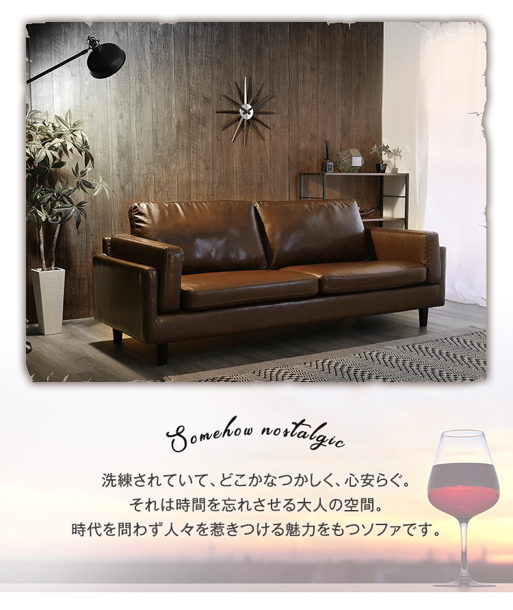 ソファー ヴィンテージ風 3人掛け ソファ おしゃれ お洒落 革調 男前インテリア ビンテージ