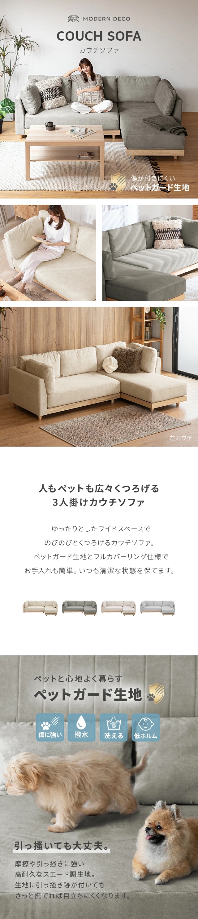 ソファー ペット対応 フルカバーリング カウチソファ 猫 犬 爪強い ソファーセット ソファ コーナーソファ ソファセット 3人掛け ペット専用