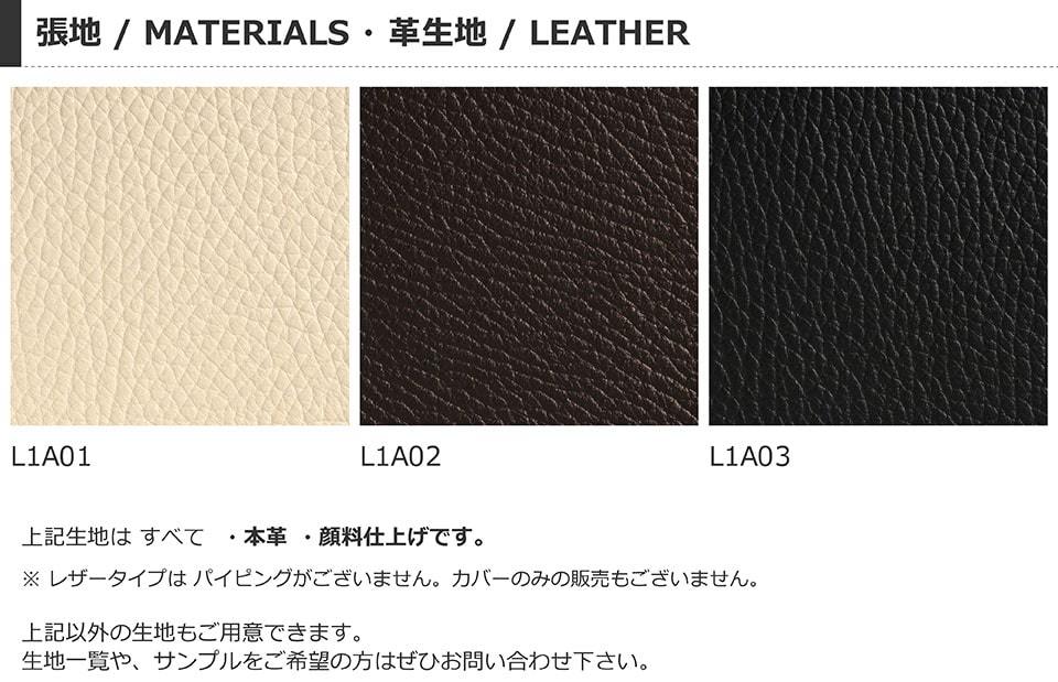 ・レザータイプは張込み仕様となっており、ソファに直接本革を加工しております。そのため、ファブリックタイプのようにカバーのみの交換等ができません。
