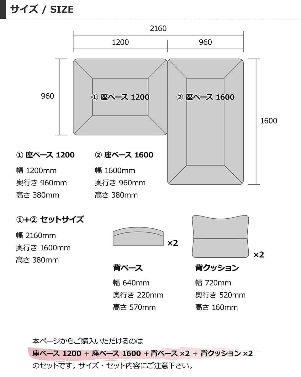 リベラ 座ベース1200 + 座ベース1600 + 背ベース2点 + 背クッション2点