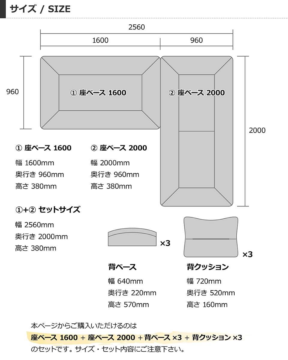 リベラ 座ベース1600 + 座ベース2000 + 背ベース3点 + 背クッション3点