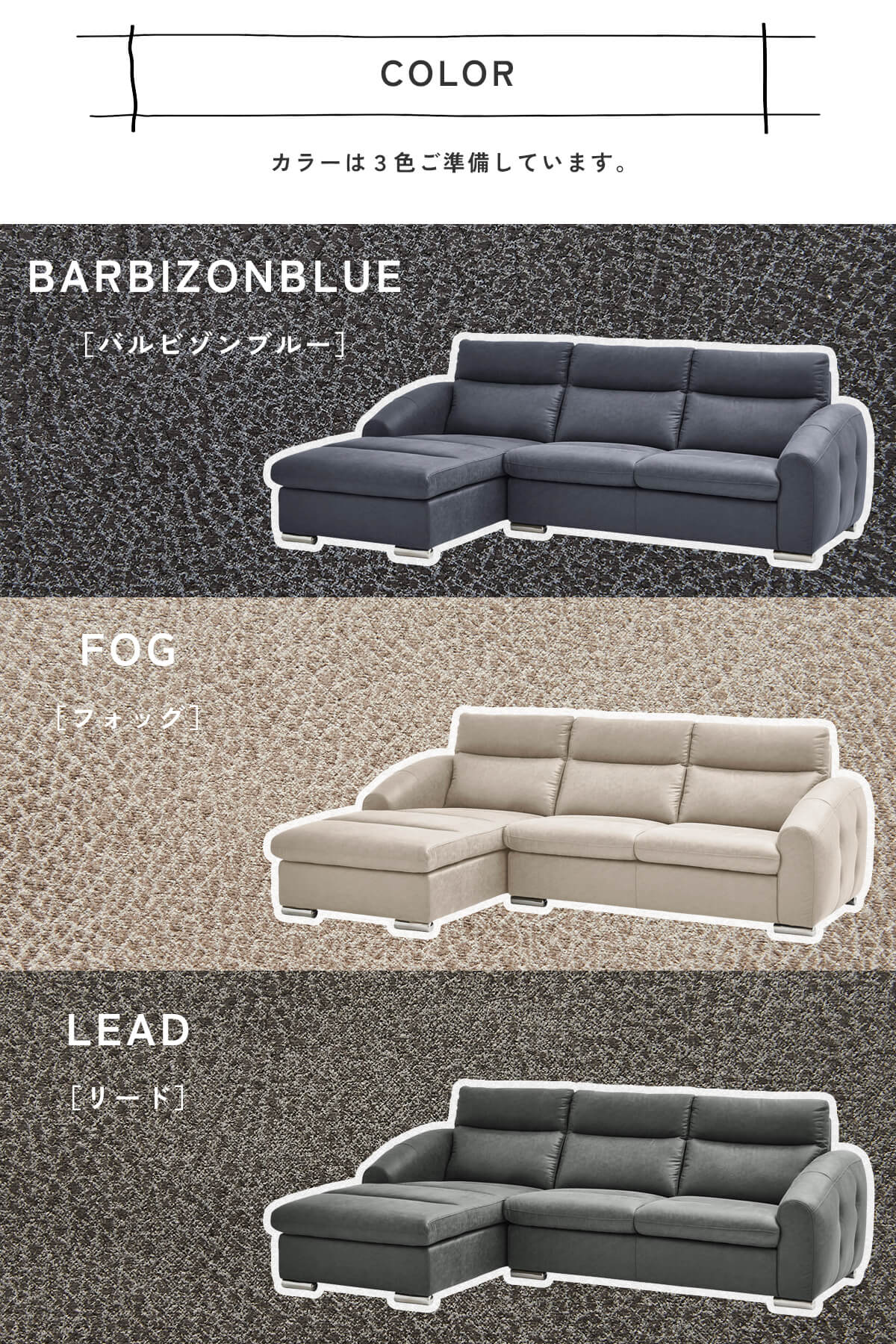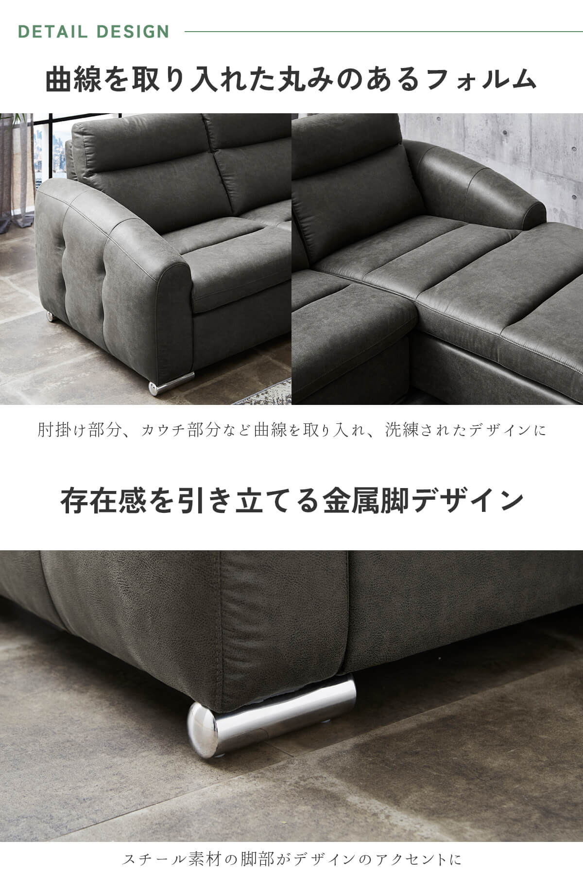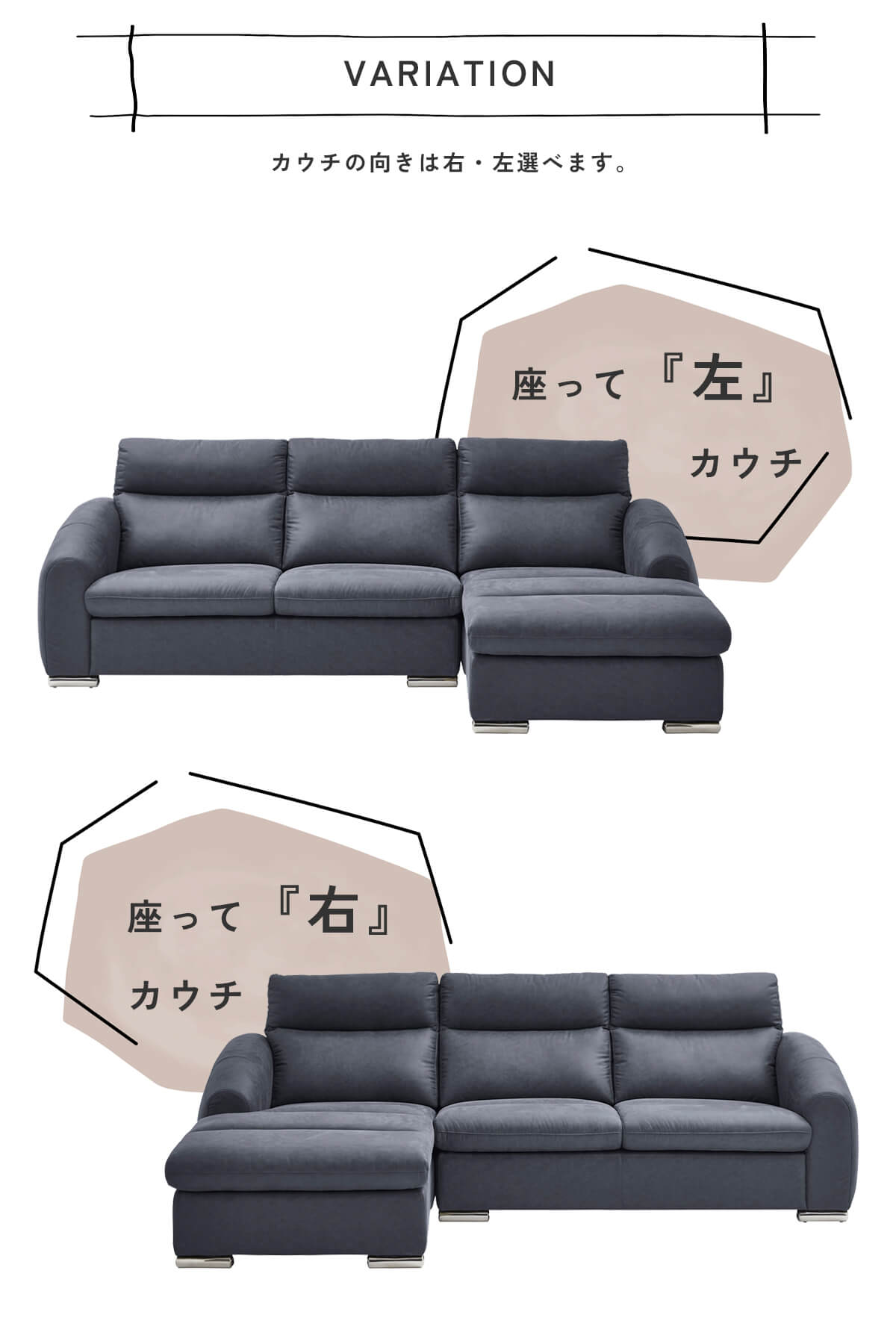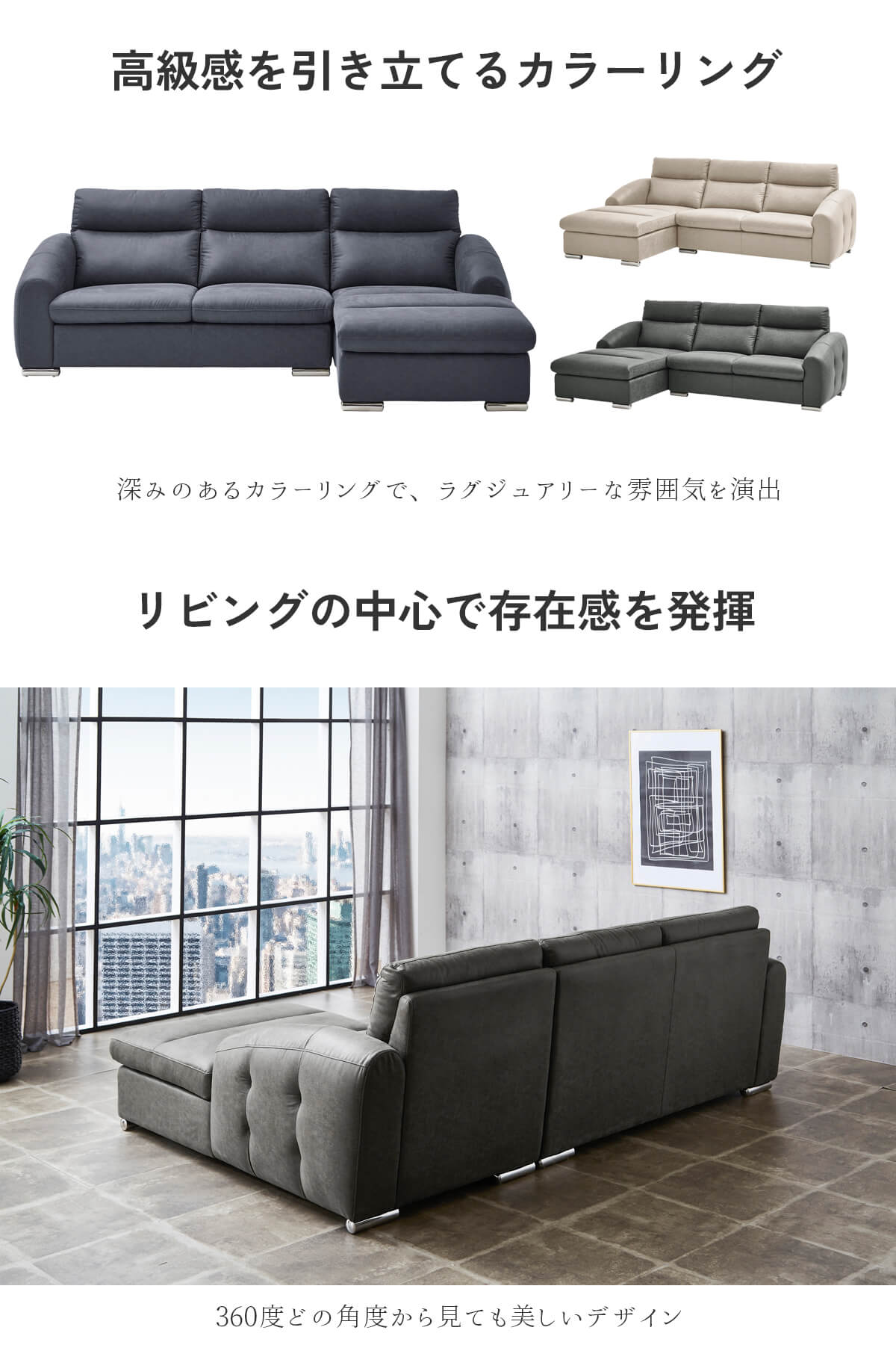 上質なレザーファブリックと包み込まれるような座り心地が魅力のカウチソファ。