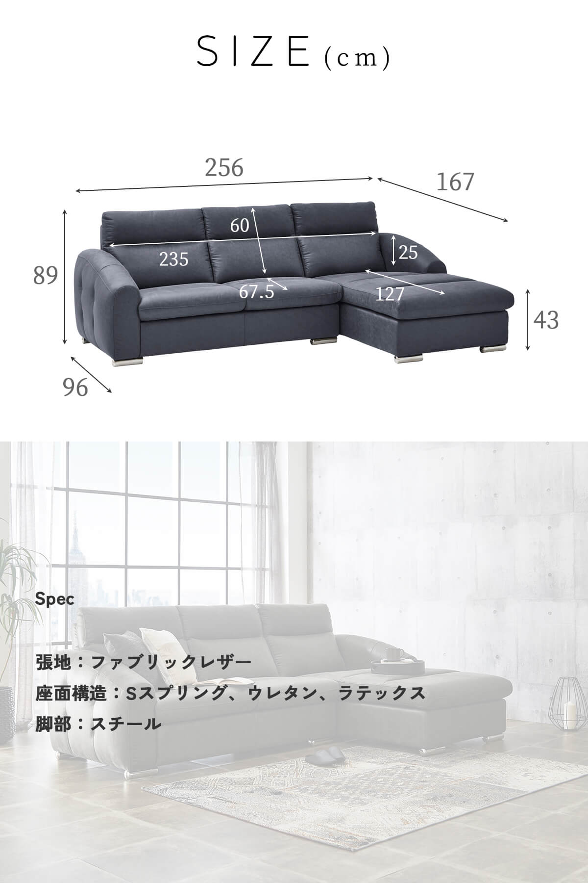 レザーファブリック、Sスプリング、ポケットコイル、ウレタンフォーム、スチール