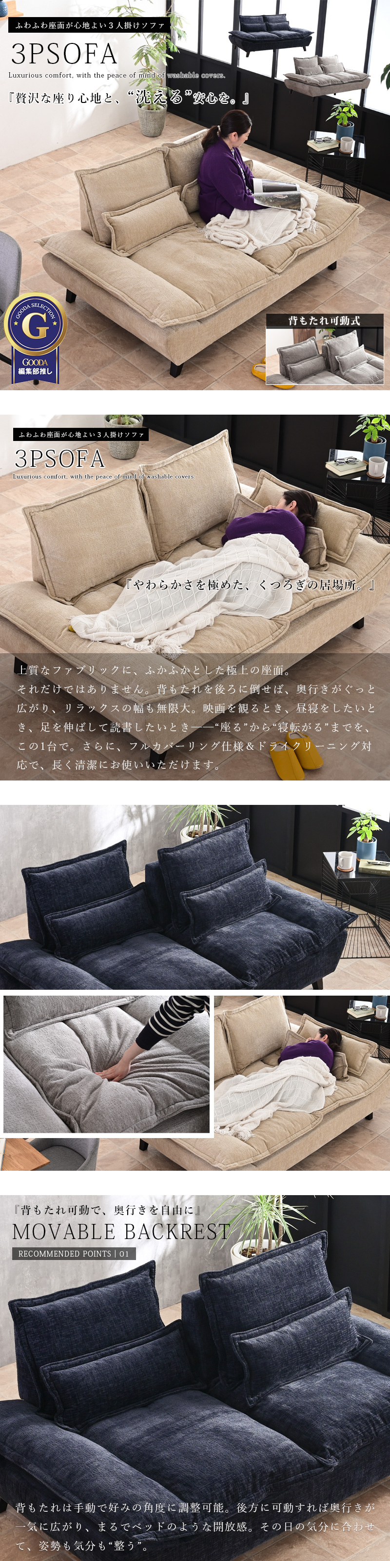 爆買 洗える ドライクリーニング対応 3人掛けソファー