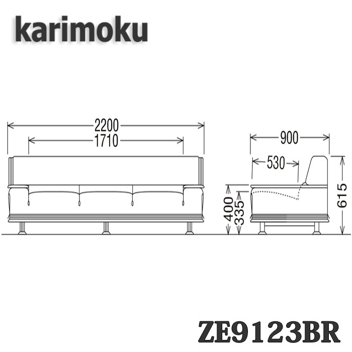 【開梱設置付き】カリモク家具 長椅子 ZE9123BR 本革張り 送料無料 日本製国産
