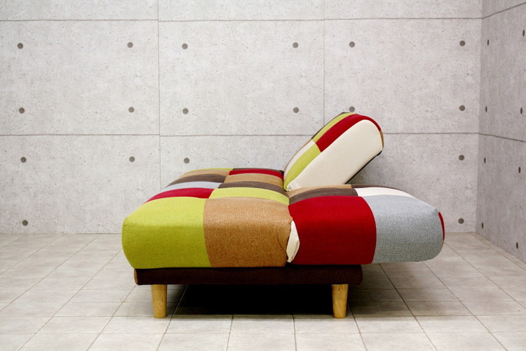 ソファ パッチワークソファーベッド 背もたれ2WAY