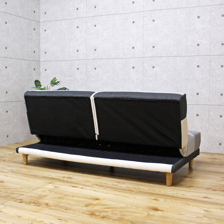 ソファ、パッチワークソファーベッド、3人掛け、3P、幅180cm、背もたれ2WAY、3段階リクライニング、カラフル、モノトーン、脚高14cm、お掃除ロボット、ロボット掃除機、おしゃれ、おうち時間、くつろぎ、リラックス