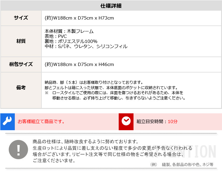 (約)188x75x73cm(脚部含む)