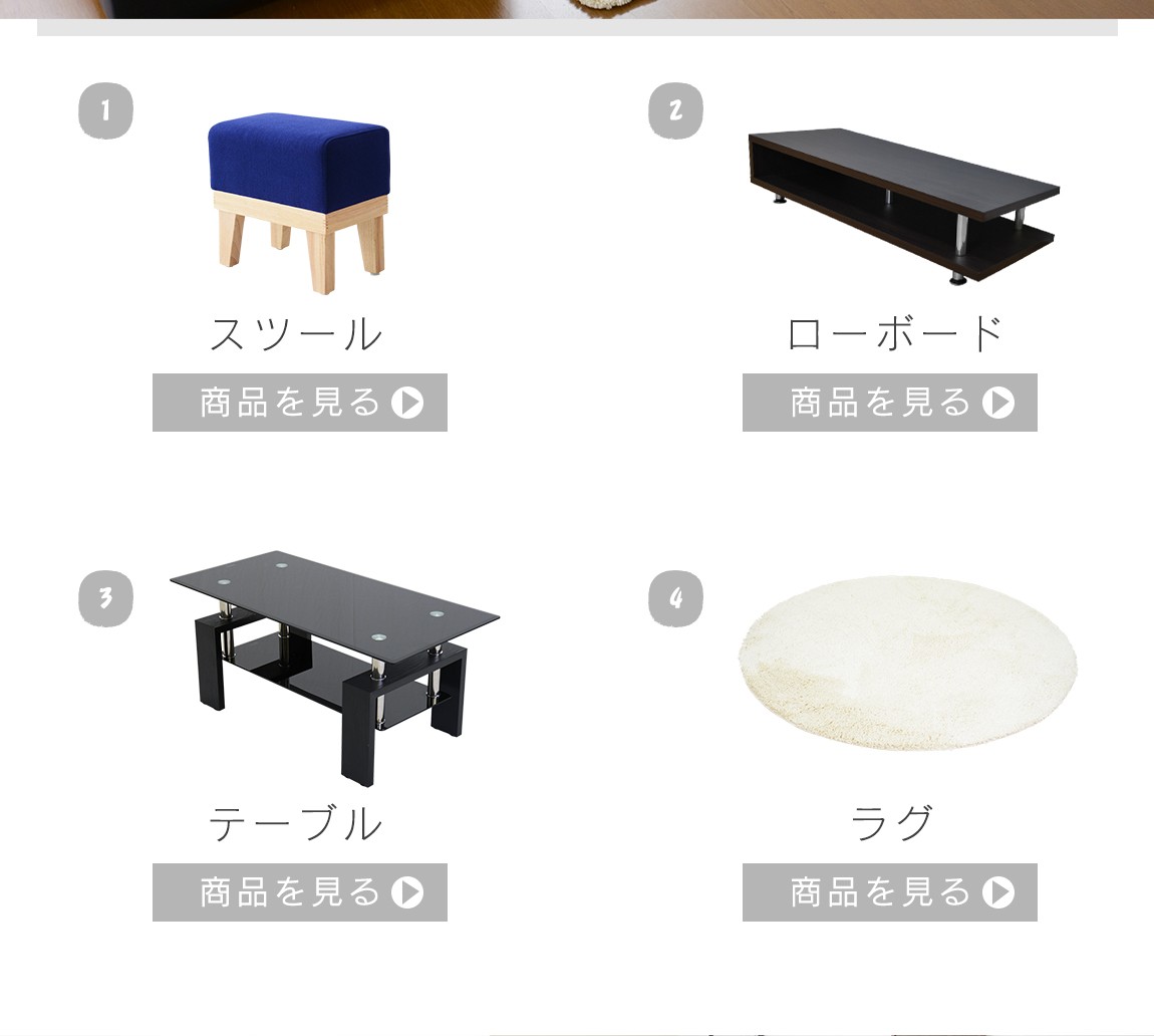 ソファとテーブルセット、デスクと収納セット、ダイニングセット等のセット商品もございます。