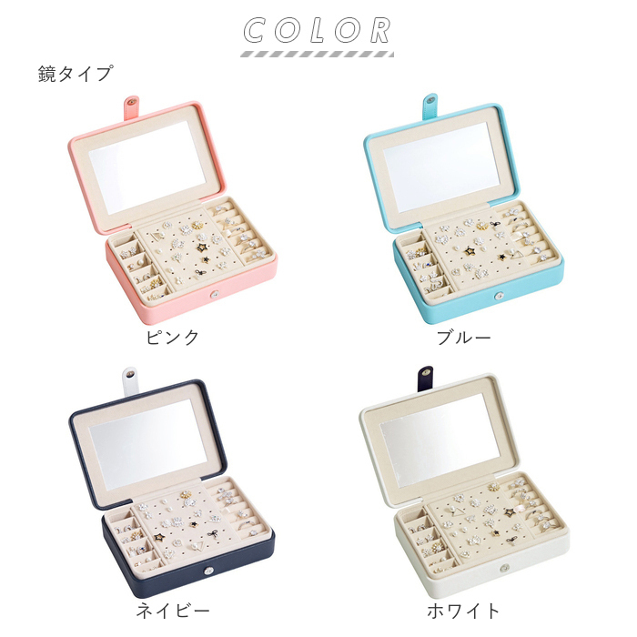 ・鏡タイプは、マグネットフラップを外してボックスを開けば、フタ裏の鏡を見ながらアクセサリーの試着やお化粧直しがラクチン。