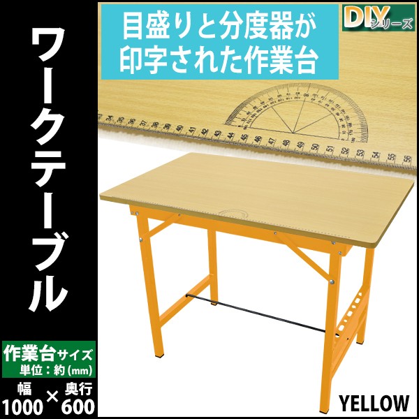 ワークテーブル ワークベンチ 黄 工作台 作業台 作業台幅約1000mm 作業台奥行約600mm 作業台耐荷重約80kg DIY 日曜大工 万能作業台 木工作業台 ガレージ テーブル コンパクト デスク 机 作業机 収納 イエロー worktablewt07yel