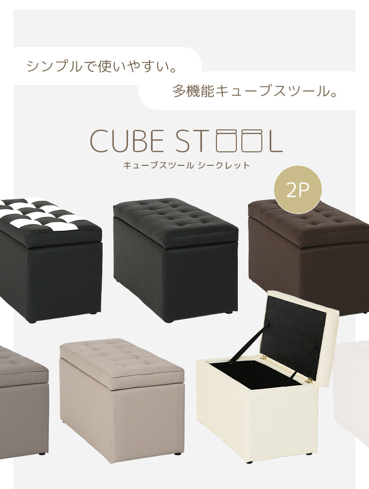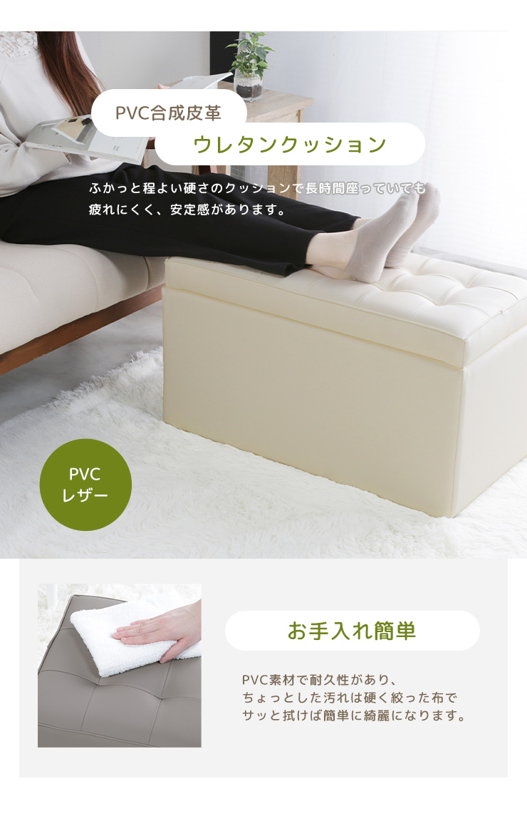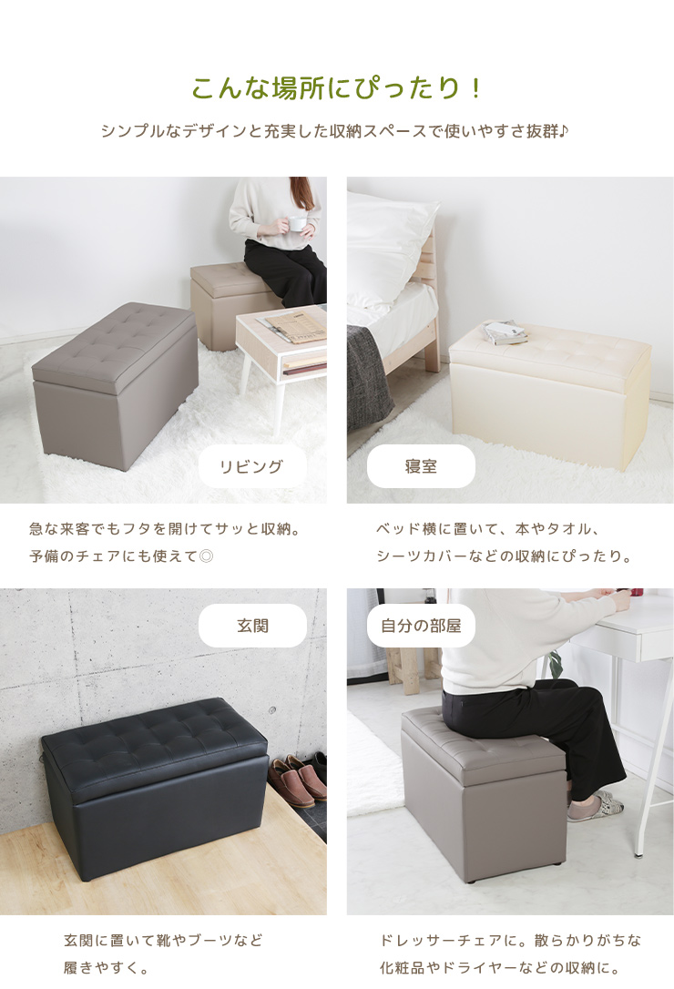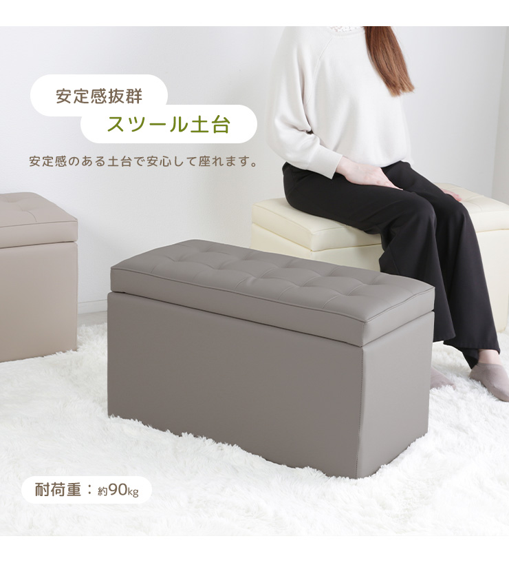 スツール 椅子 収納 座れる クッション 長方形 2人