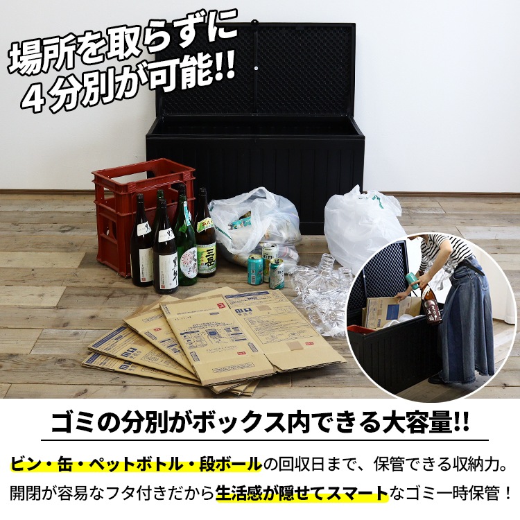 ベランダ 灯油 収納box ケース 大容量 ごみばこ ちり箱 くず入れ ゴミ入れ ごみ入れ 家庭用 ゴミステーション 外 屋外用 外置き 野外 屋外ストッカー 収納ベンチ 保管庫 屋外収納庫 保管用 コンテナ コンテナボックス 物入れ ふた付き 大きい 大きめ 110 高さ55cm ロータイプ 低め 低い 軽い 軽量 横型 四角 長方形 270リットル 270l 小型 小さめ 小さい 中学 置きはい 置き配 座れる ベンチ 雨ざらし 錆びにくい お洒落 オシャレ シンプル 事務所 オフィス 店舗 店 バルコニー 新居 新築 ペットボトル ビン 缶 プラスチック 資源ごみ おもちゃ 外遊び 遊び道具入れ アウトドア用品 キャンプ用品 掃除用具 黒 ブラック プラスチック サムライ家具