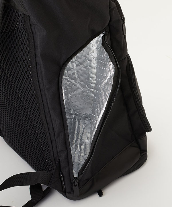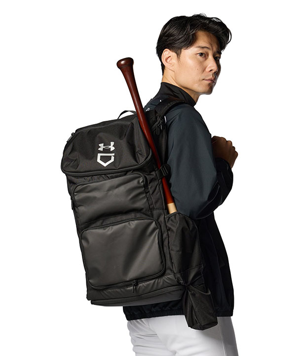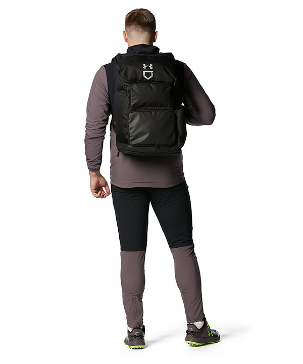 バットやグラブ、ユニフォームやシューズまで、野球道具一式を収納できる大容量バックパック。保冷機能がついたサイドポケットなど、すべての機能を野球に特化させた専用高機能バッグ。雪や雨をはじく撥水加工「ストーム」により、悪天候下の水濡れ、グラウンドやベンチで水が染みるなどのトラブルも防止する。