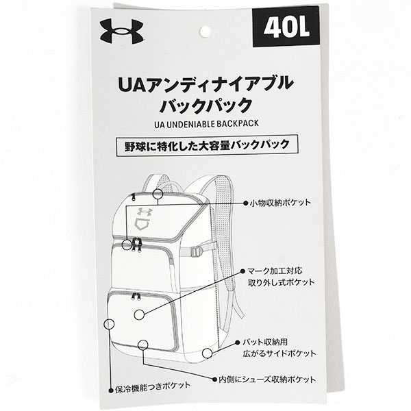 バット&シューズ収納可能! バックパック アンダーアーマー UNDER ARMOUR 40L リュックサック デイパック スポーツ バッグ 野球 1378263