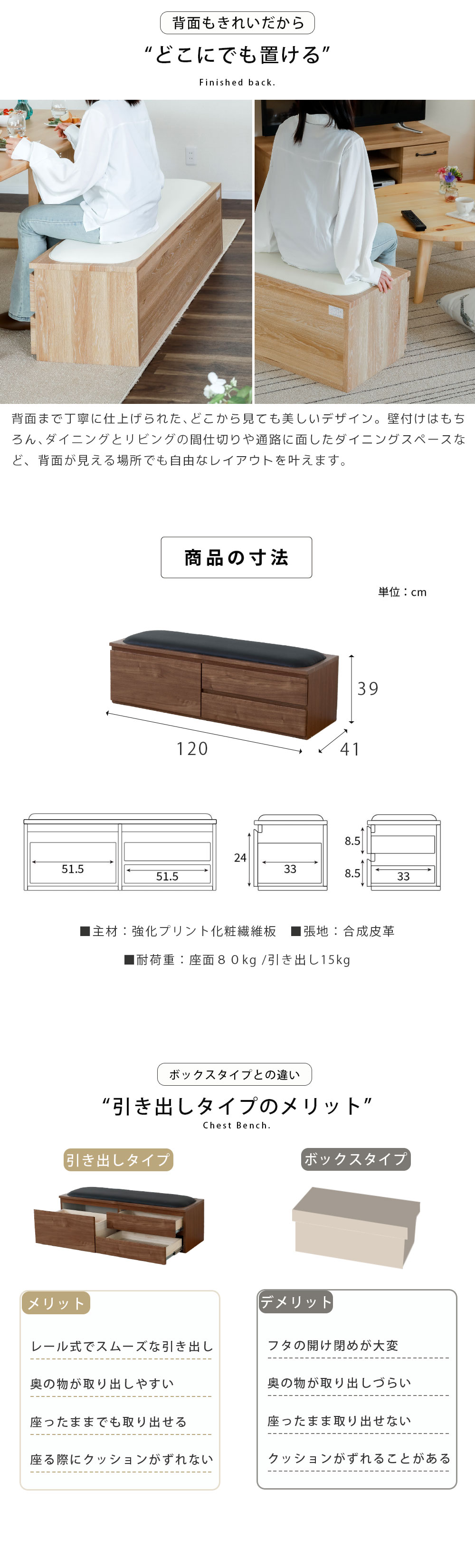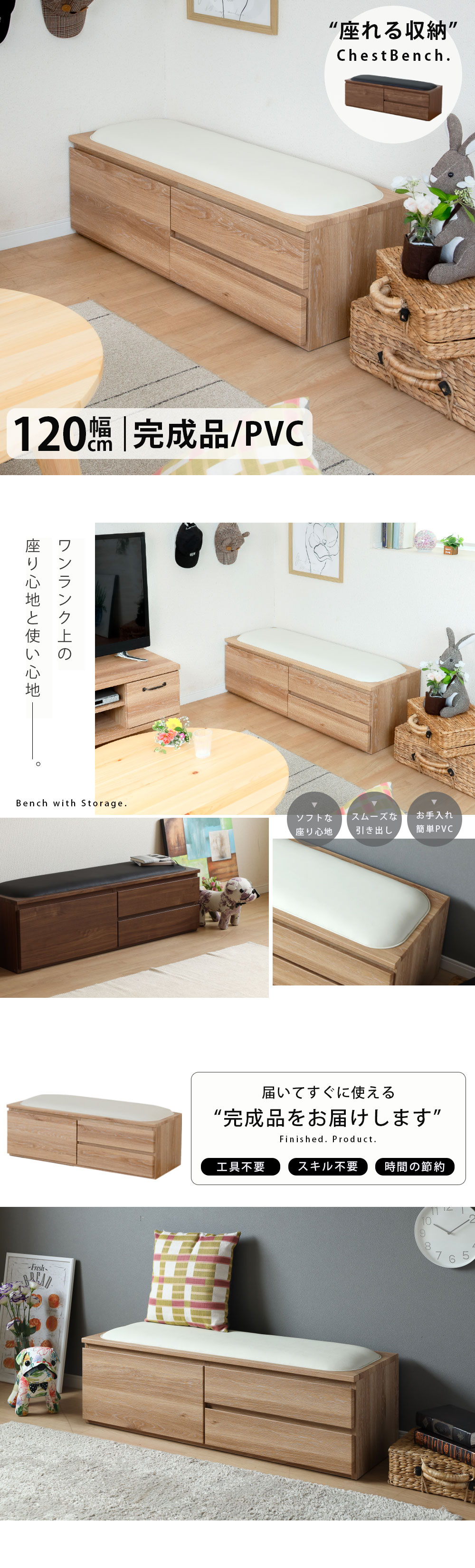 チェストベンチ おしゃれ 収納 かわいい 北欧 120幅 木製 白 レザー 黒 木目 子供部屋家具 低座面 コンパクト ベンチ収納