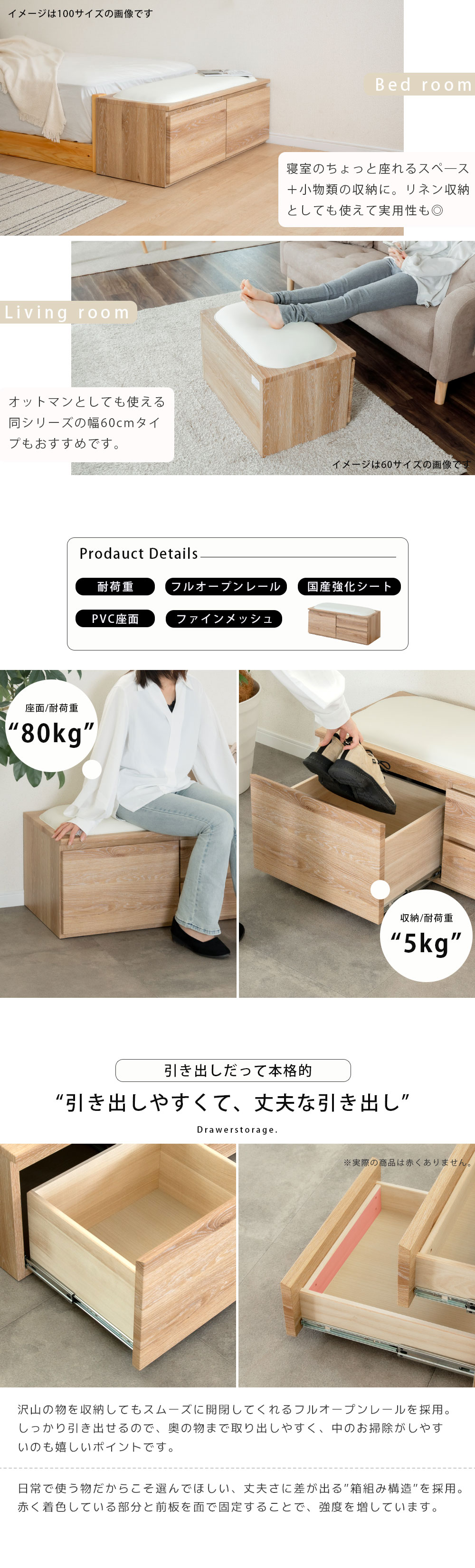 【耐荷重】座面:80.0kg 引出し:20.0kg