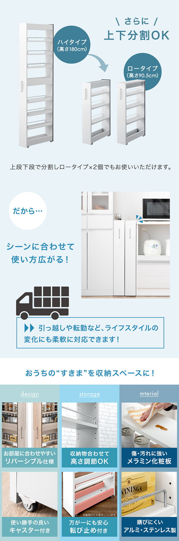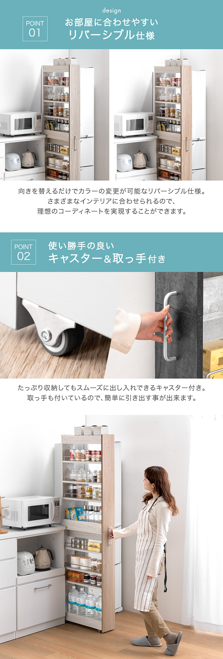 隙間収納 キッチン スリム ハイタイプ リバーシブル 49600453 49600454 49600455 49600456 49600457 冷蔵庫 隙間収納ラック キッチン収納