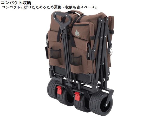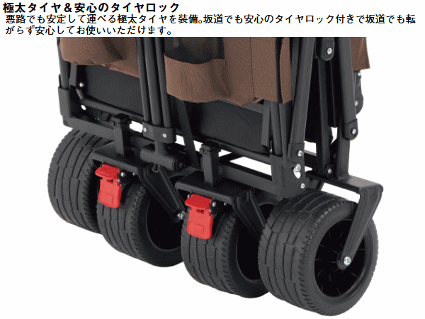 省スペース。極太タイヤで悪路もスムーズに移動ができ坂道にも安定しておけるロック機能付
