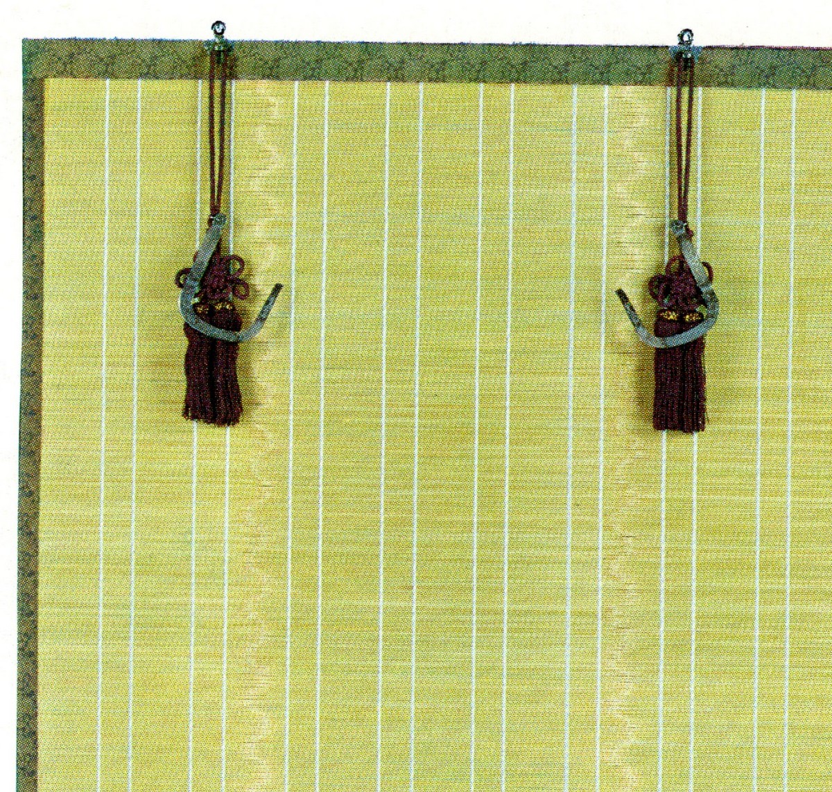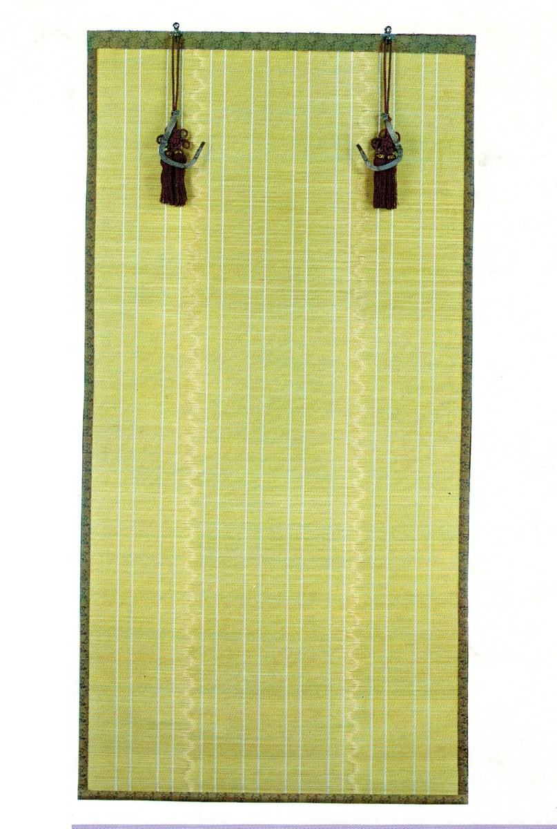お座敷すだれ 9号 寄布 竹皮 ヒゴ 通り節 遠州織四方べり 菊房銀いぶし平カギ付き