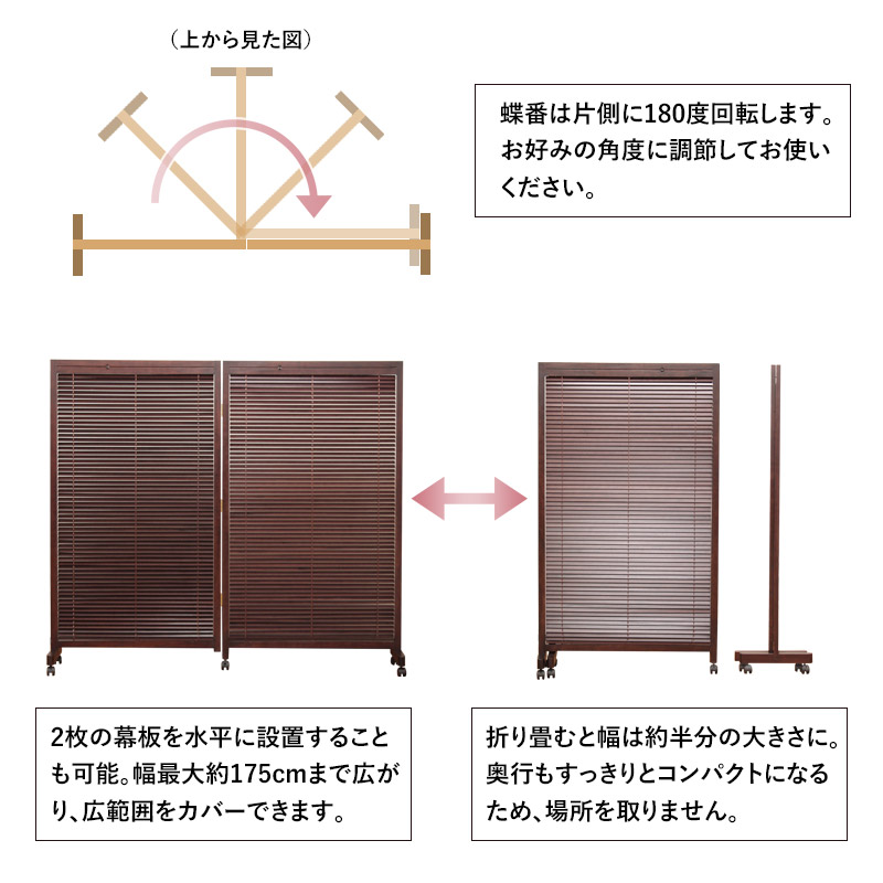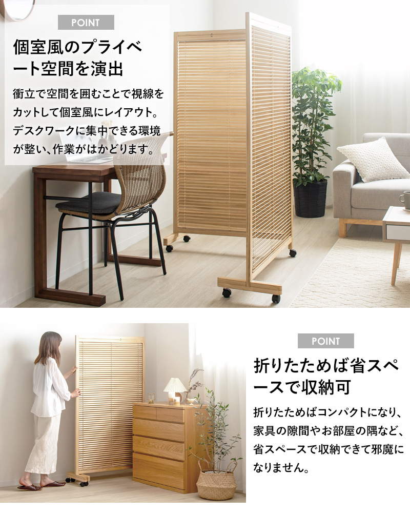衝立 パーテーション おしゃれ 2連 仕切り 折りたたみ 目隠しスクリーン 部屋 間仕切り オフィス 高さ155cm キャスター付き ついたて パネル 木製 ブラインド