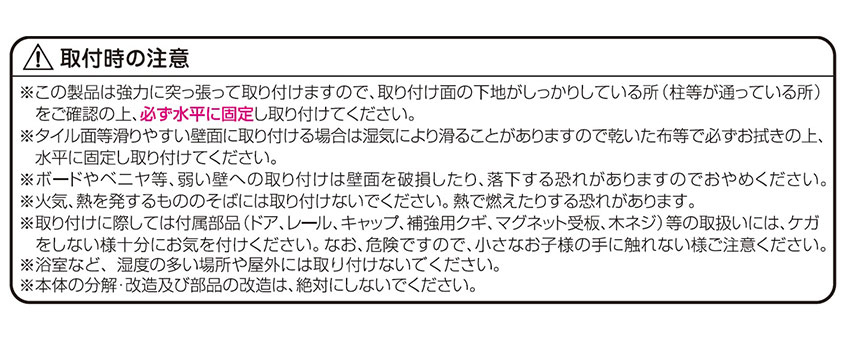 ・賃貸住宅やタイルコンクリートなど、釘が打てない場所にも使用可能