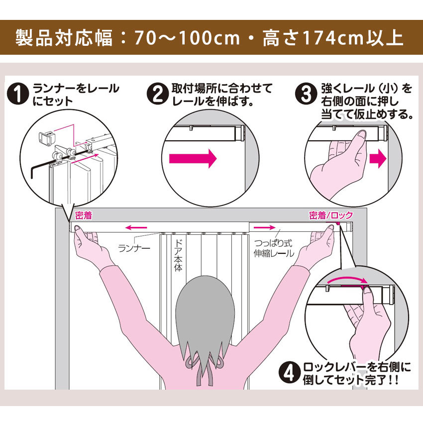 つっぱり アコーディオンドア 突っ張り式 木目調PVCタイプ 100×174cm