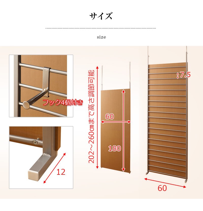商品サイズ:サイズ:(約)約幅60×奥行き12×高さ202〜260cm