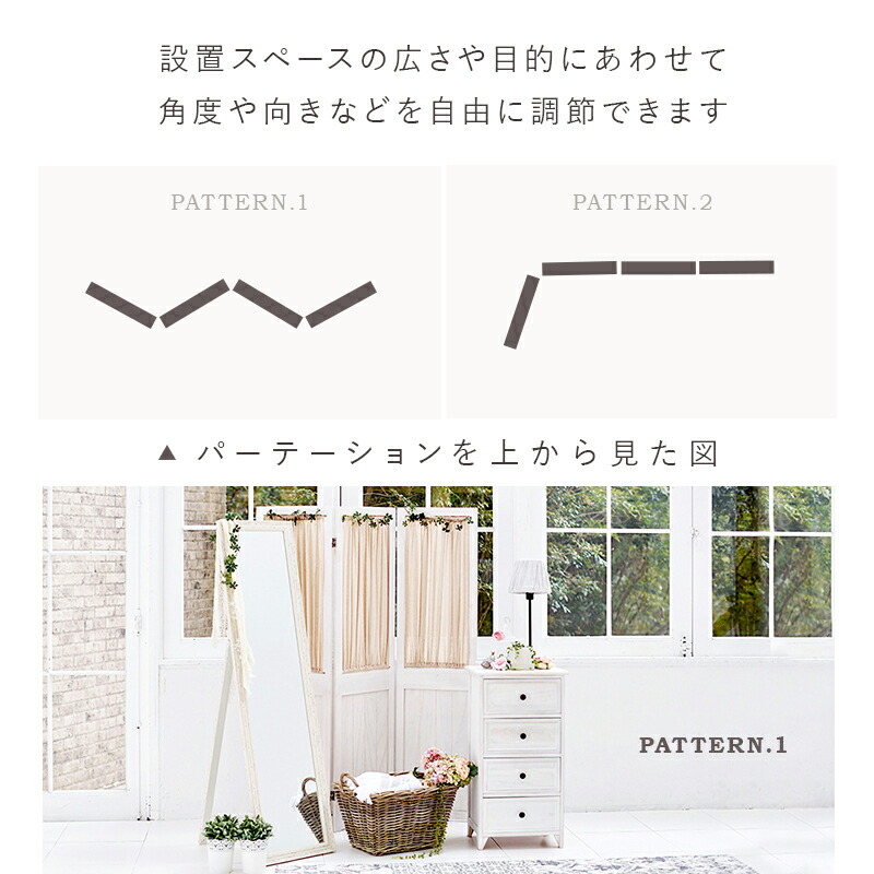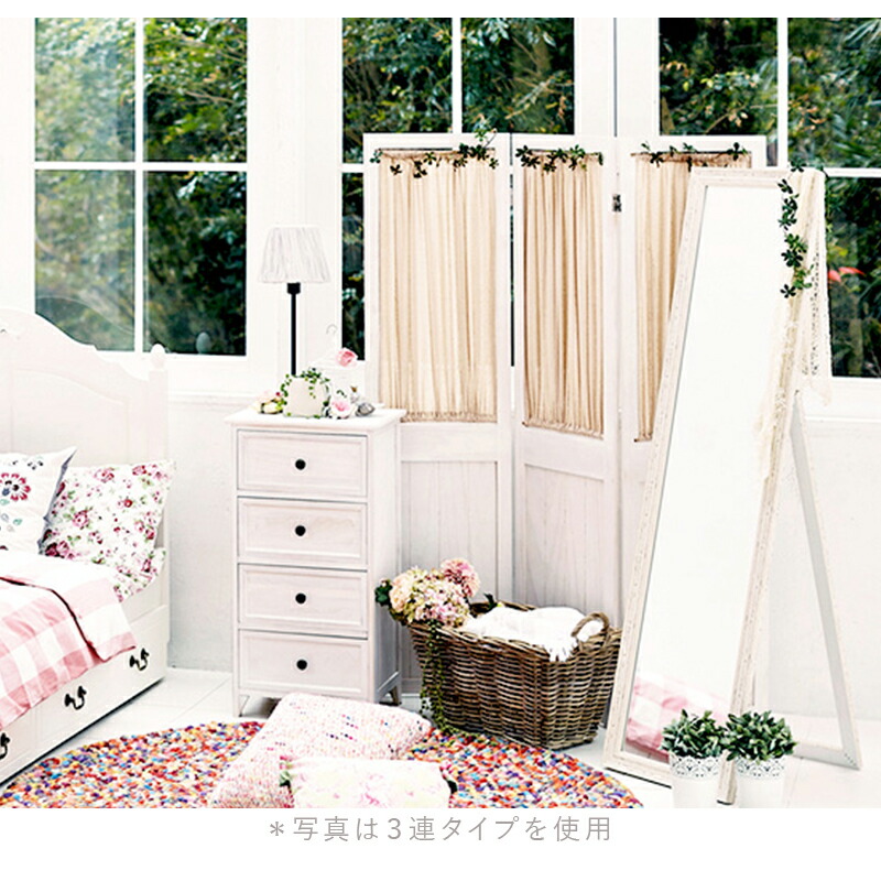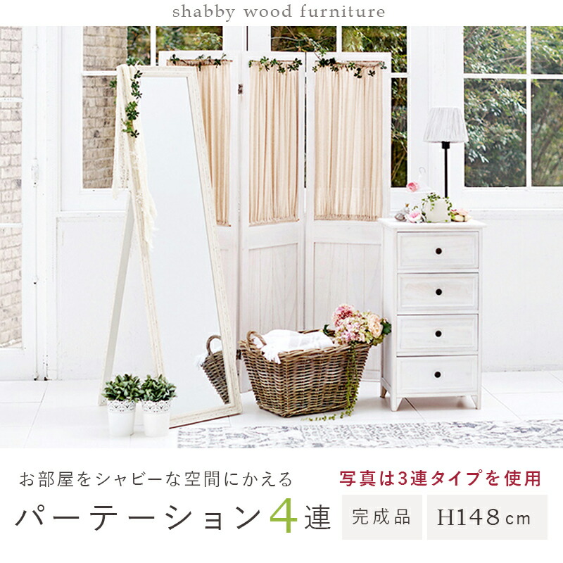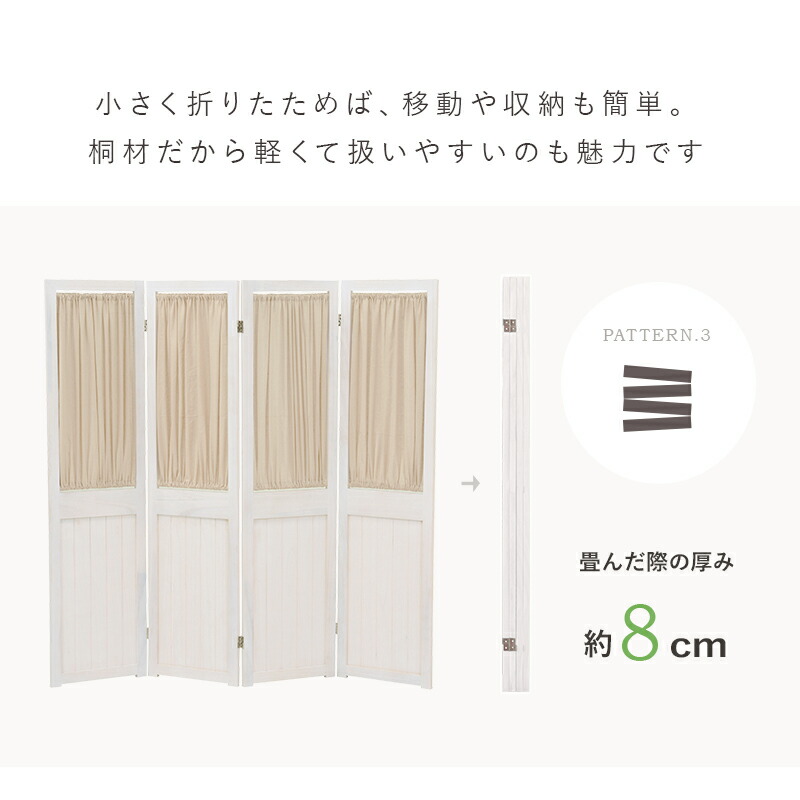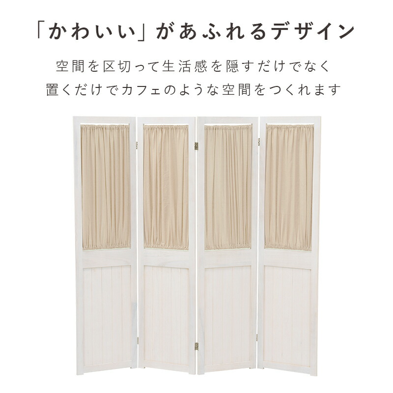 カーテンが取り外し可能な4連パーテーション。お部屋の仕切りや