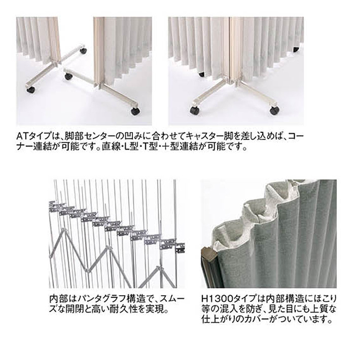 L型、T型、+型連結が可能なアコーディオンスクリーン。
