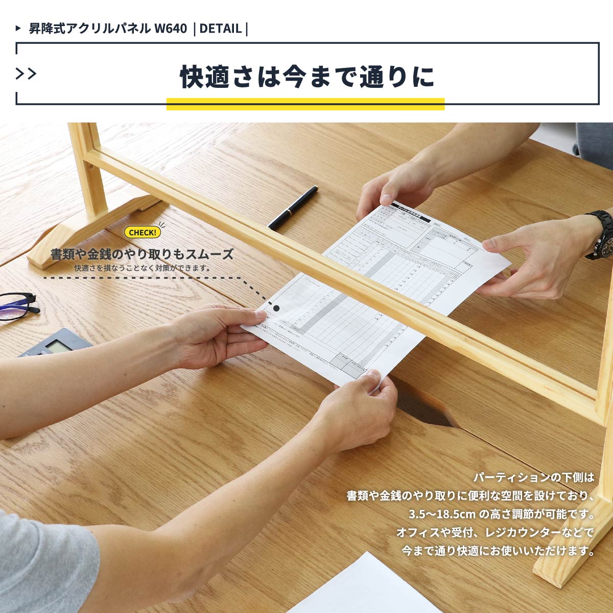 アクリル板 コロナ対策 64cm 高さ調整 おしゃれ 木製 飛沫防止 事務所 窓口 受付 卓上 アクリル パネル パーテーション 仕切り おしゃれ ナチュラル ブラウン
