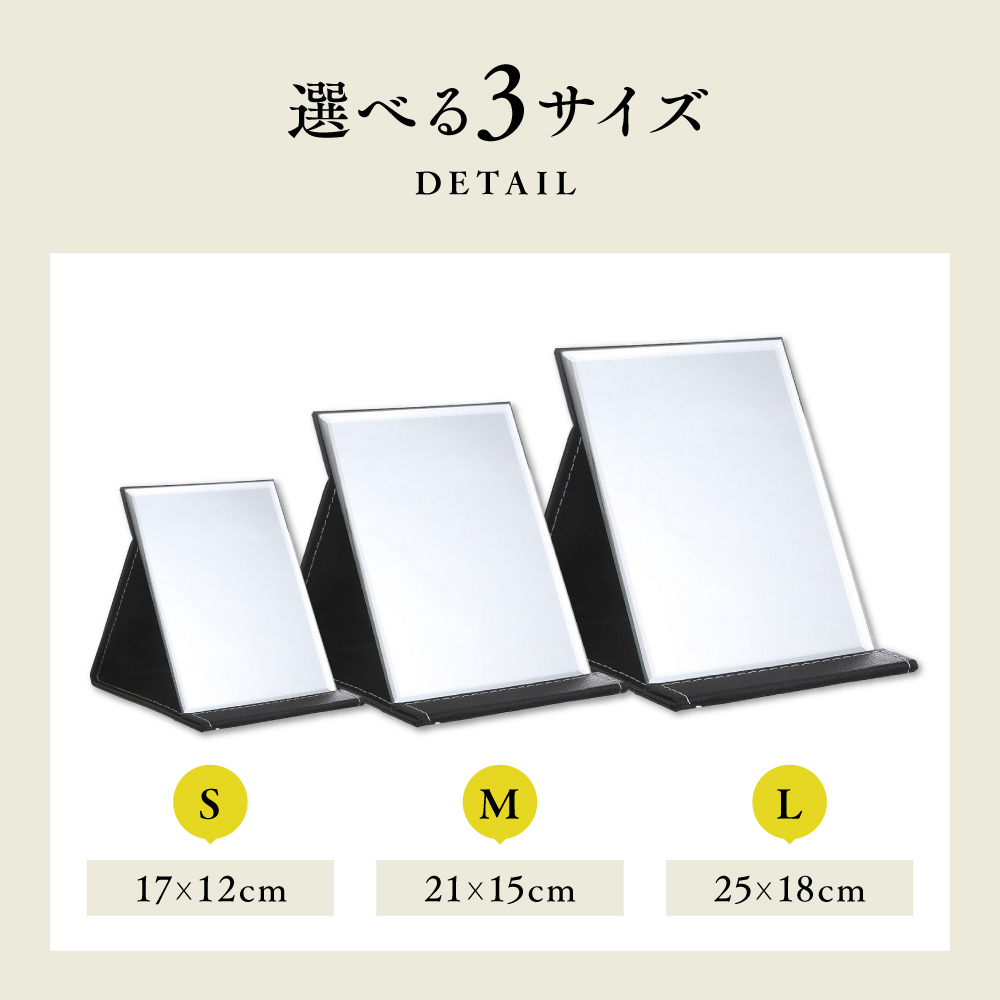 選べる3サイズ・3カラー折りたたみ式卓上ミラー