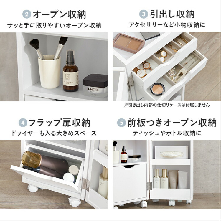 コスメワゴン コスメボックス コスメ収納 メイク収納 メイクボックス ホワイト 小さめ 小型 小さい 低め ロータイプ 隙間収納 すき間 家具 木製 木目 オシャレ 人気 おすすめ 大容量 化粧品 メイク用品 収納家具 インテリア 引き出し 浅型 深型 サイドテーブル 照明 女優ミラー 蓋付き フタ付き ふた付き ワンルーム 幅30cm 鏡付き かわいい 韓国 インテリア 新生活 縦 収納付き ミニドレッサー 鏡付き ミラー付き サムライ家具