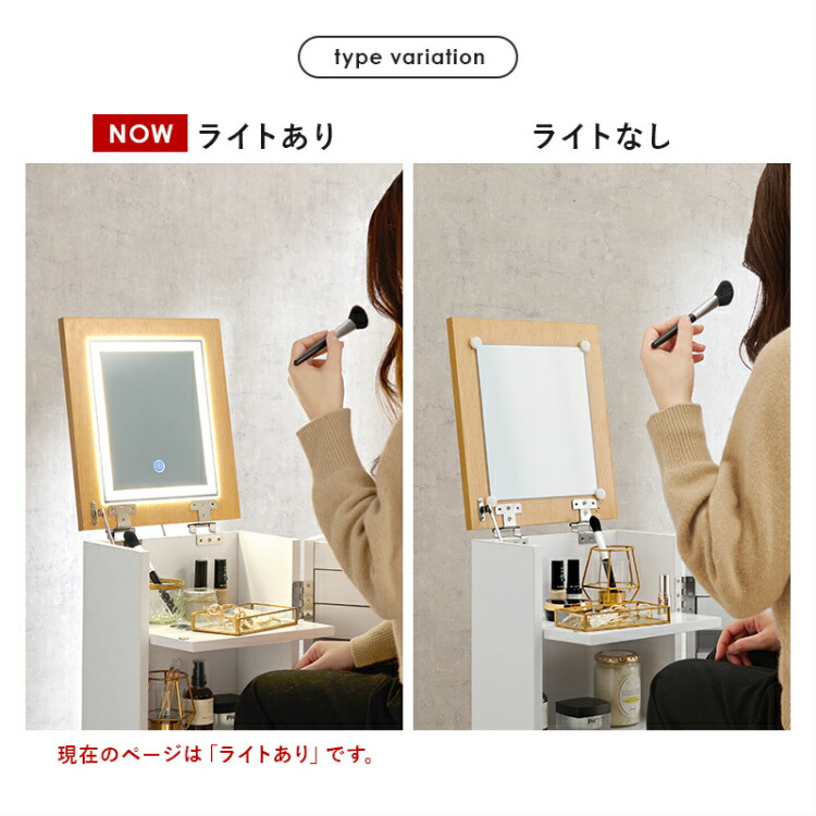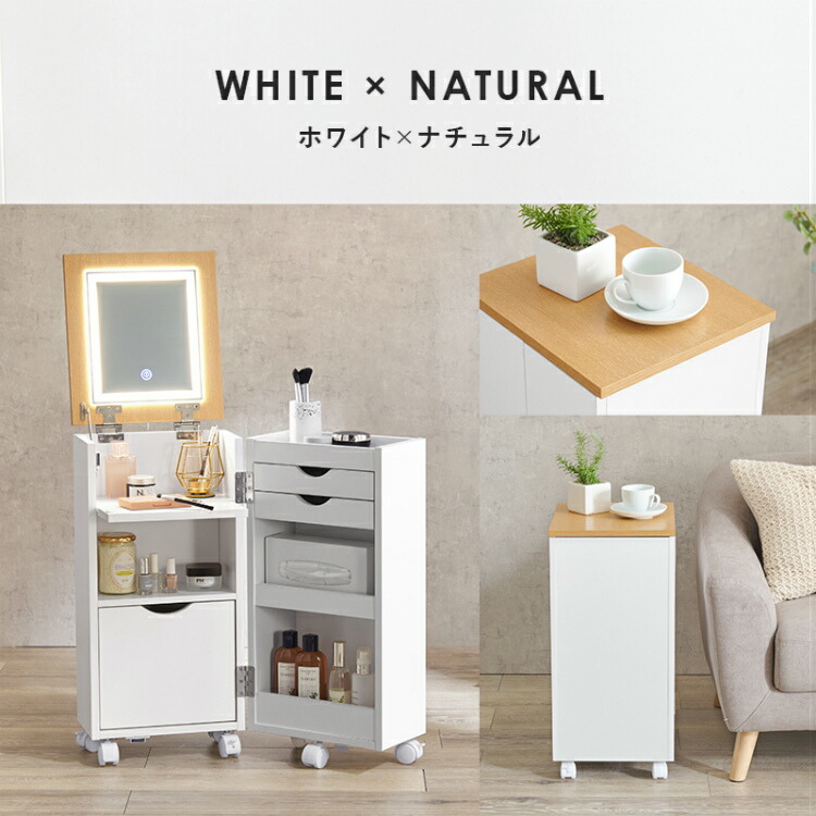 ドレッサー コンパクト コスメ 収納 ワゴン 小さめ おしゃれ 鏡台 キャスター付き 化粧台 小型 白 ライト付き メイク led 完成品