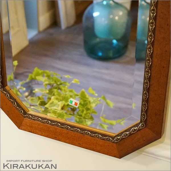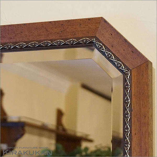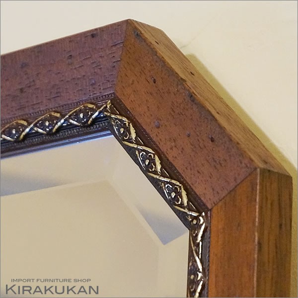 【素材】木製&面取りミラー、ウレタン塗装古木風仕上げ