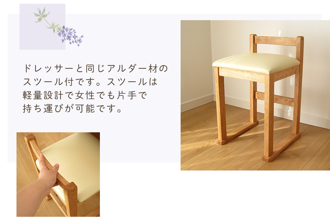 (天板、引出し前板):アルダー無垢材
