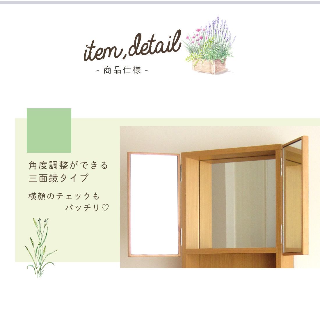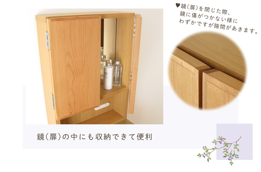 (側面・扉(鏡)前板・内部):プリント化粧合板