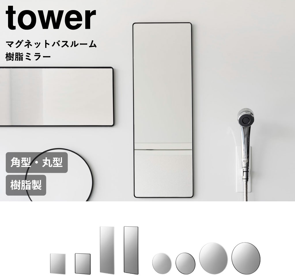 浴室壁面に設置できる、towerシリーズのおしゃれなマグネットバスミラーです。