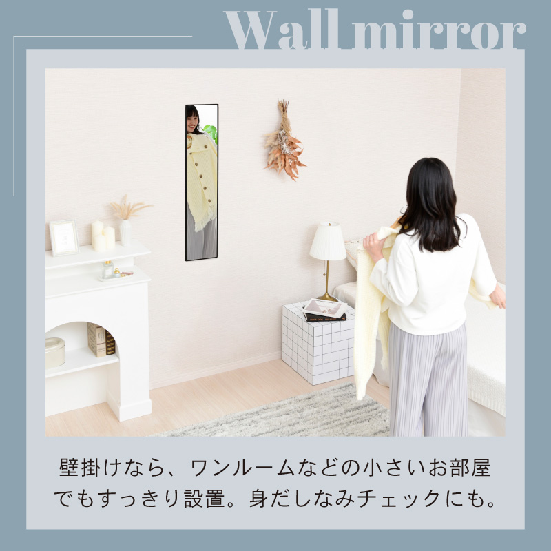 壁かけミラー 壁掛け鏡 姿見 縦横使える 立てかけ 飛散防止加工 北欧風 全身 全身鏡 壁掛け対応 小さめ 鏡 縦長 横長 玄関 リビング 洗面所 ミラー かがみ