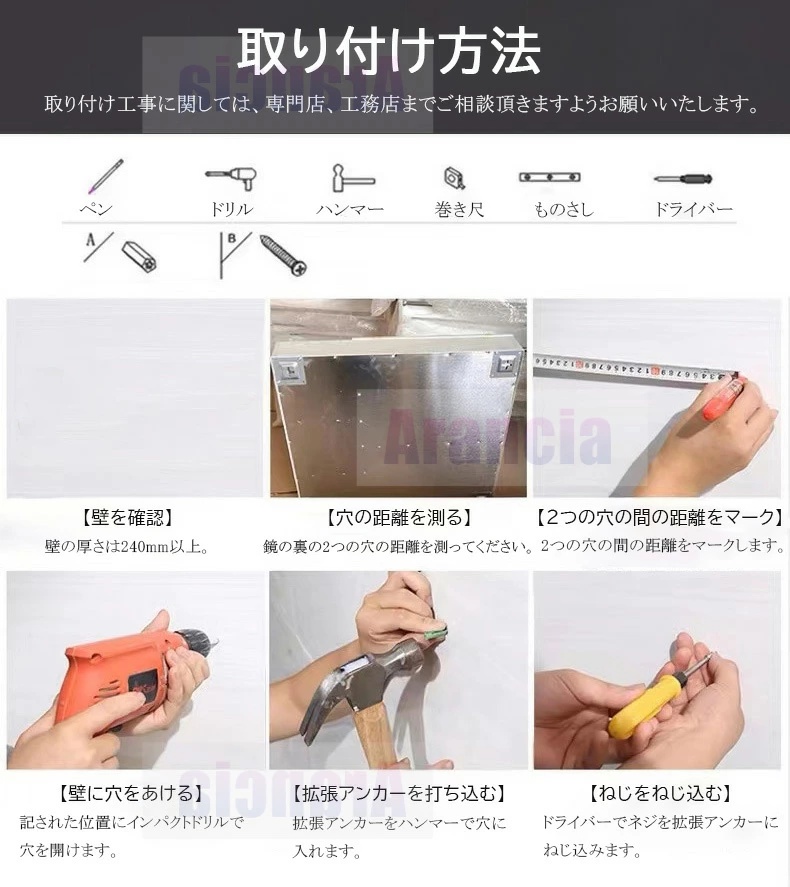 ※輸送中に鏡が割れるのを防ぐために、工場から出荷時に鏡にテープを貼ることがございます。お客様が商品を受け取ったら、テープをはがせばいいので、製品の使用に影響しません。予めご了承くださいませ。