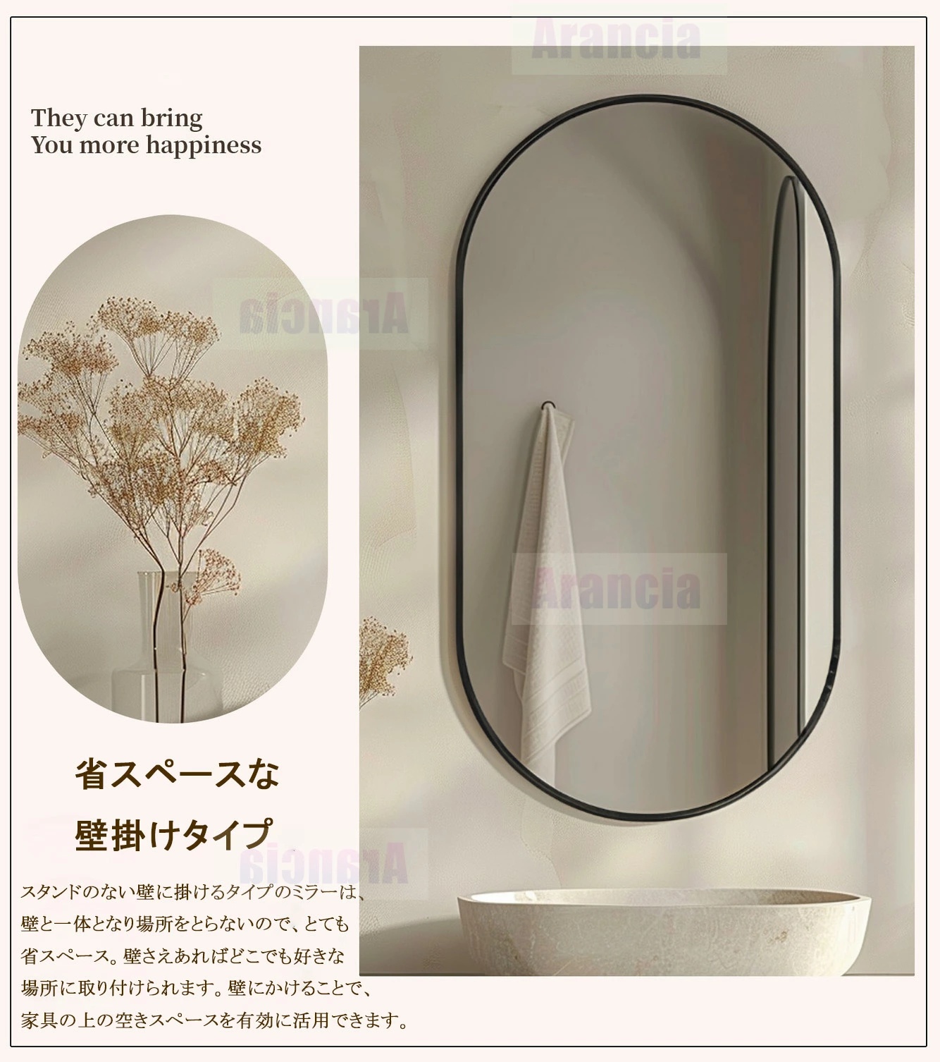 ・洗面台や浴室に設置すれば、毎日の身だしなみを整える時間がより楽しく、効率的になることでしょう。このミラー一つで、空間のグレードをぐっと引き上げ、日常に彩りを加えることができます。