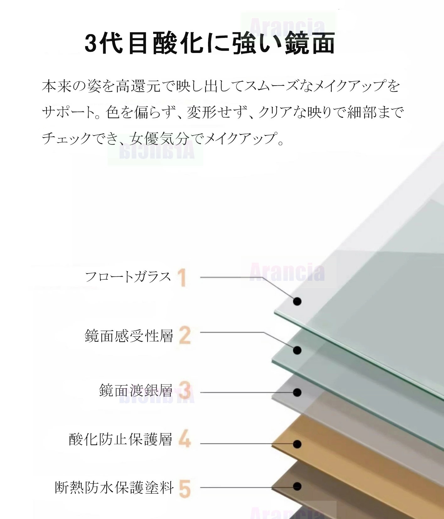 ・また、割れにくい素材を使用しているため、日常の使用においても長持ちする耐久性を備えています。お手入れが簡単で、常にクリアな映りを保つことができるため、日々の準備を快適にサポートします。