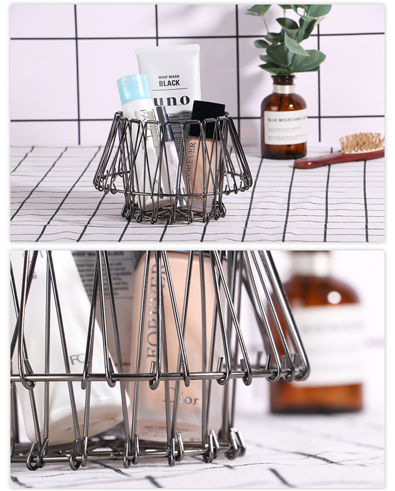 【保管が簡単】ワイヤーバスケット 使わない時は一つに折りたたんでスペースを節約できます キッチン 寝室 会社 学校などで使用できます