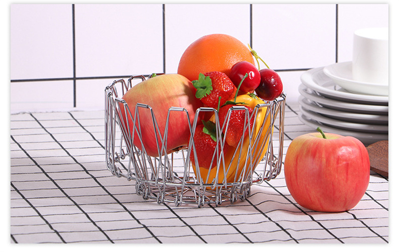 変形バスケット ステンレス 変形バスケット フルーツかご ステンレス バスケット 金属製の多機能 折りたたみ式 大容量のクリエイティブフルーツバスケット耐久性