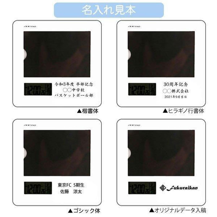 野球、サッカー、バレー、バスケットボール、卓球、柔道、剣道、空手、カヌー、ボート、吹奏楽、バトミントン、ラグビー、陸上競技など、様々な卒業・卒部の記念品に最適です。時計が付いているので、時間の経過とともに変わる思い出を感じられます。