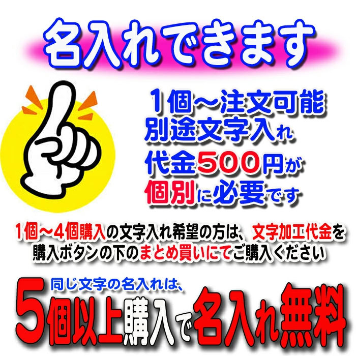 こちらの商品は5個以上のご注文(名入れ内容が同一の場合)で名入れ無料となります。