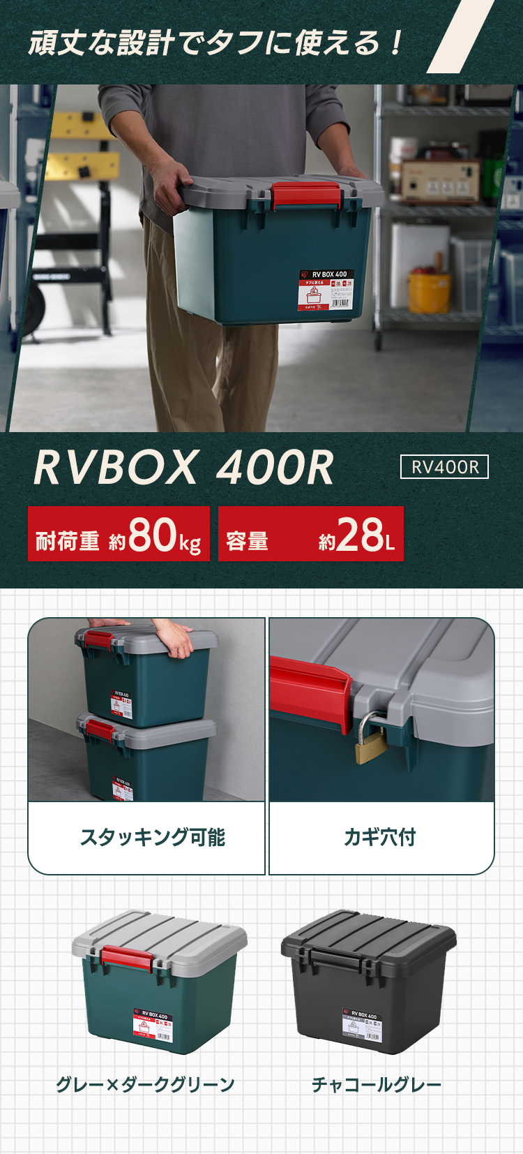収納ボックス 屋外 コンテナボックス 工具 収納 RVBOX400 RV400R アイリスオーヤマ